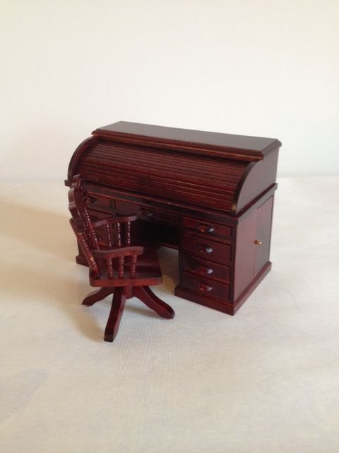 AM004 roltop bureau met draaistoel, mahonie AFM: 13x6x9 cm