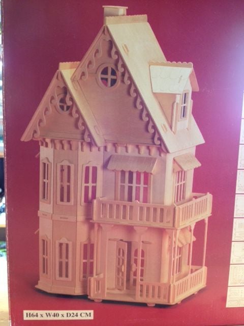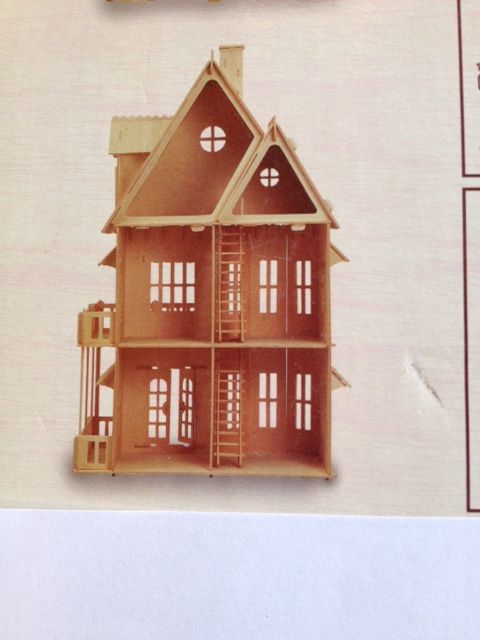 Het bouwpakket is compleet met alle delen van het huis op voorgestanste triplex platen, sierlijsten, veranda, balkon, twee trappen en gesimuleerde daksingels.